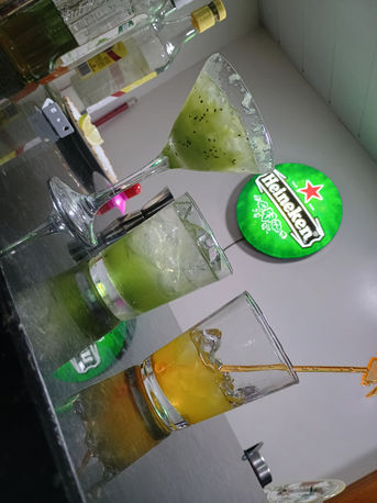 Bebidas destiladas: Uma seleção de 5 garrafas Whiskys, 5 garrafas Vodkas, 5 garrafas Camparis, 5 garrafas Pingas e outras opções, conforme disponibilidade no restaurante e bar.